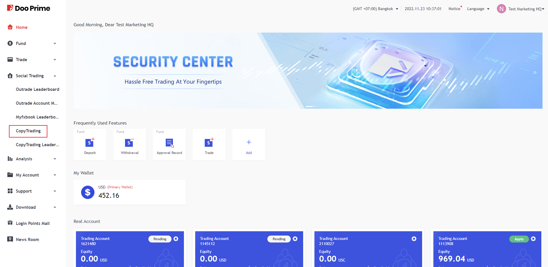 1. Bạn có thể chọn đăng nhập vào CopyTrading thông qua thanh menu bên trái của Trung tâm người dùng Doo Prime.